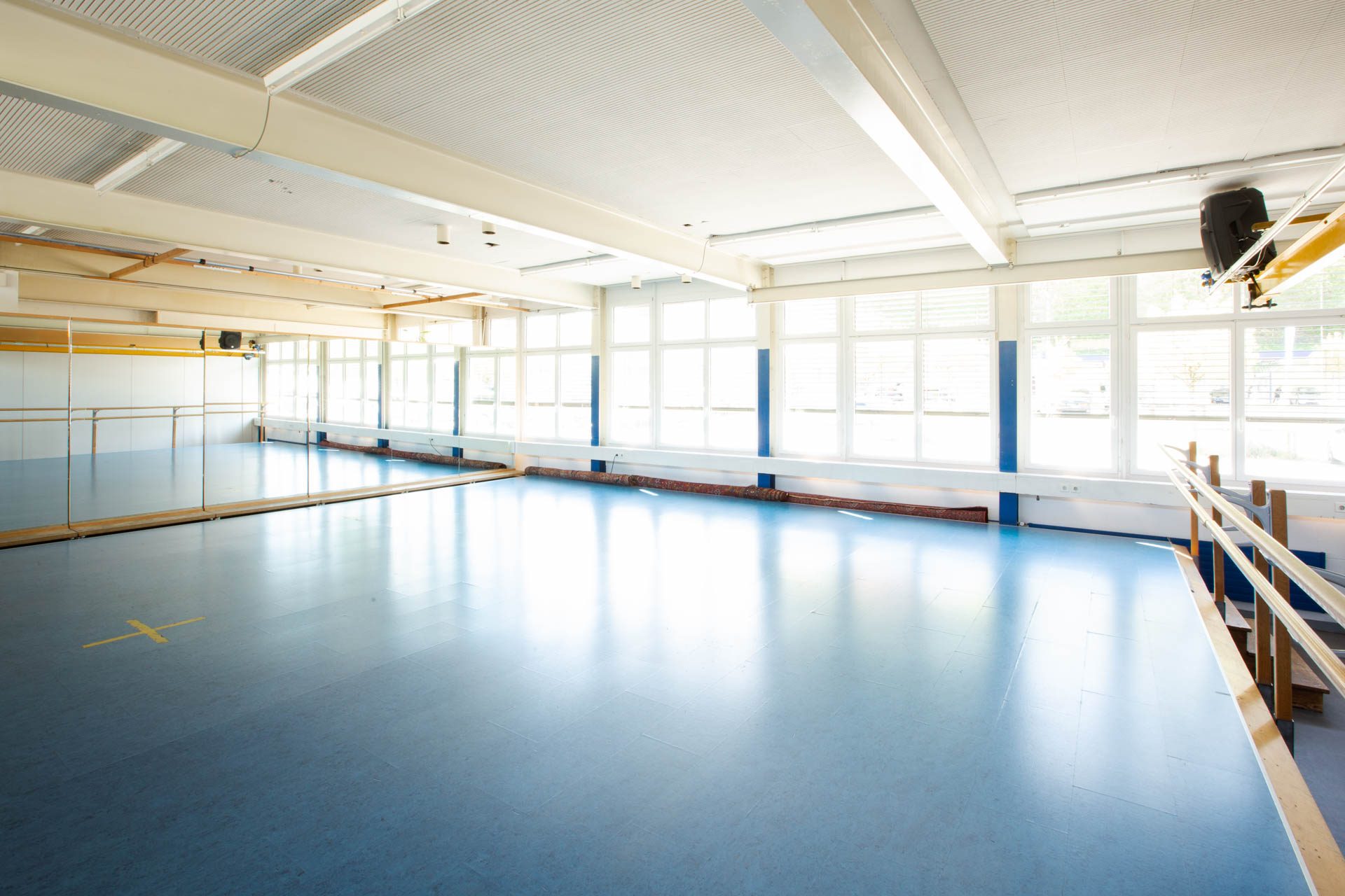 Dieser Saal ist mit einem Tanzboden speziell für zeitgenössische Tanzstile und Ballett ausgestattet